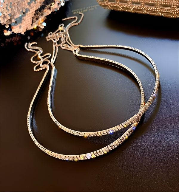 2 Layered Diamonds Stoned Attached Head Band Material Alloy With Crystal Diamonds For Girls And Women