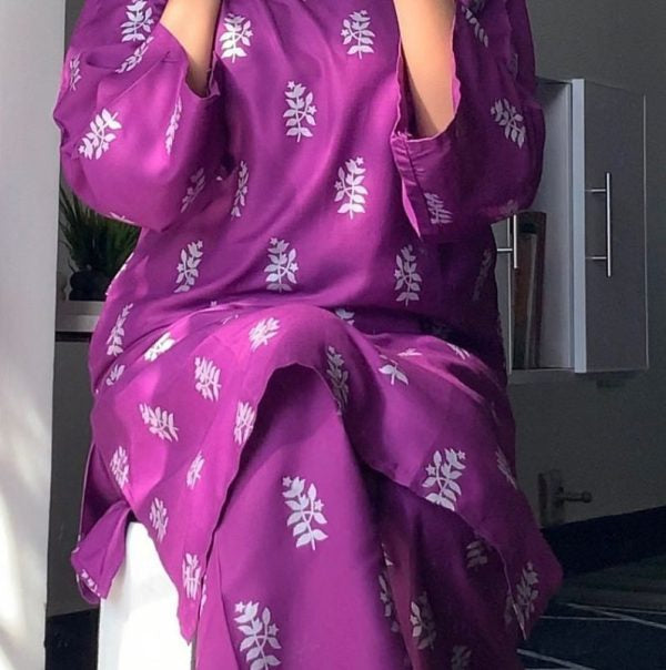 2 Pcs Women’s Stitched Star Print Linen Casual Wear For Girls
