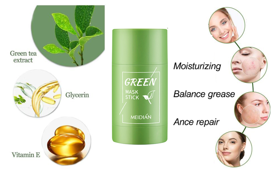 - The Green Tea Blackhead Removal Mask Stick contains natural ingredients that cleanse pores and remove dead skin cells, while balancing oil and providing moisture and nutrients to the skin. It effectively reduces blackheads, improves acne and facial dullness, and lightens skin tone. Suitable for all skin types, the mask is small and lightweight, making it convenient to use and apply. Simply cleanse and tone your face, apply the mask evenly, leaving it on for 10-15 minutes before rinsing off. Results may vary for each individual. Use regularly for best results