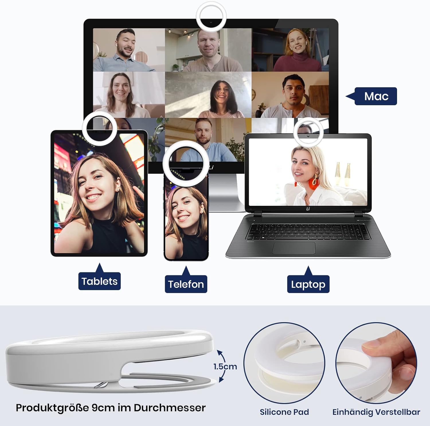 ◆ LIGHTWEIGHT – The selfie light ring is super lightweight and easy to fit in your pocket, so you can get the perfect selfie anywhere. Moreover, the 450mAH built-in battery can last 4-7 hours and can be recharged at any laptop.