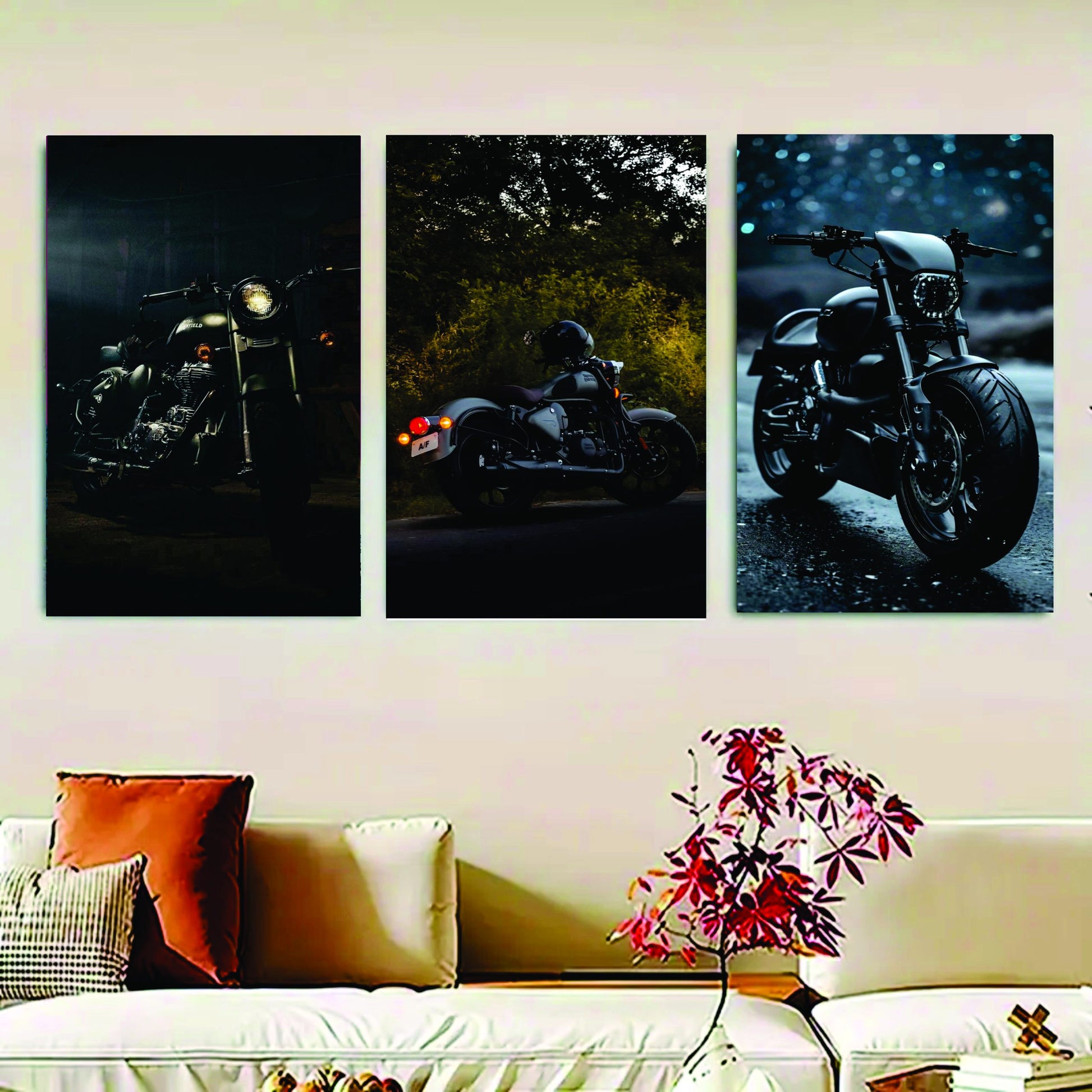Set Of 3 Bikes Sticky Canvas Frames For Wall Decor / Sticky Prototiles