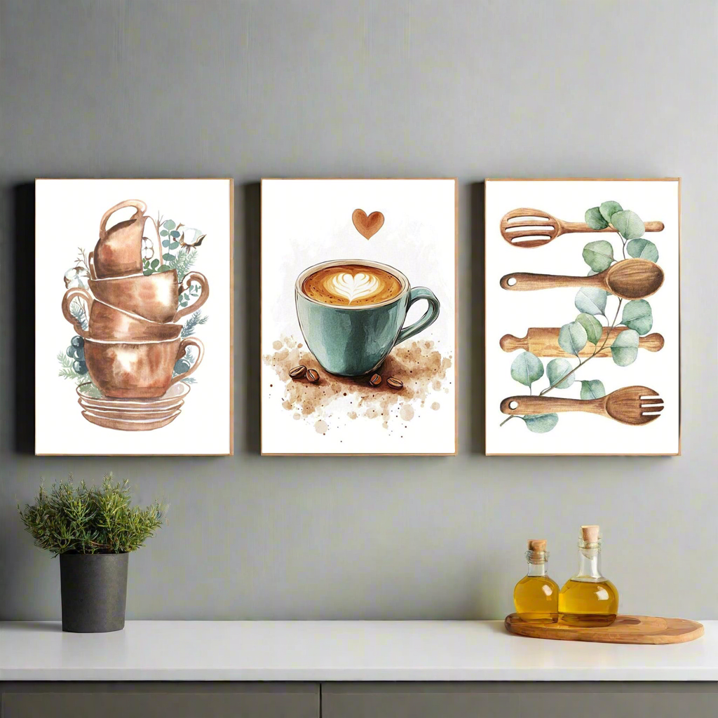Set Of 3 Wall Art Sticky Wooden Canvas Frames For Dining Room And Kitchen Decor / Sticky Photo Tiles