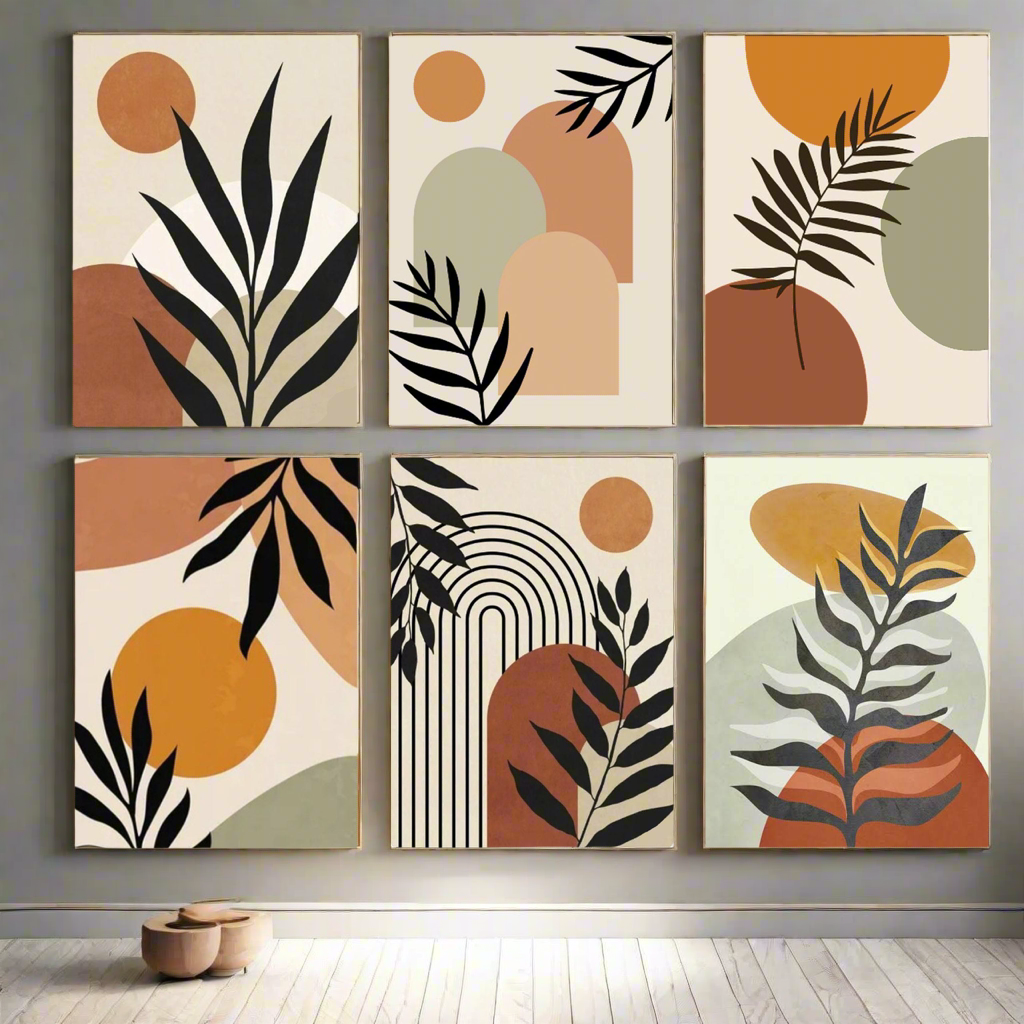 Set Of 6 Abstract Art Wooden Canvas Frames For Wall Decoration / Sticky Photo Tiles