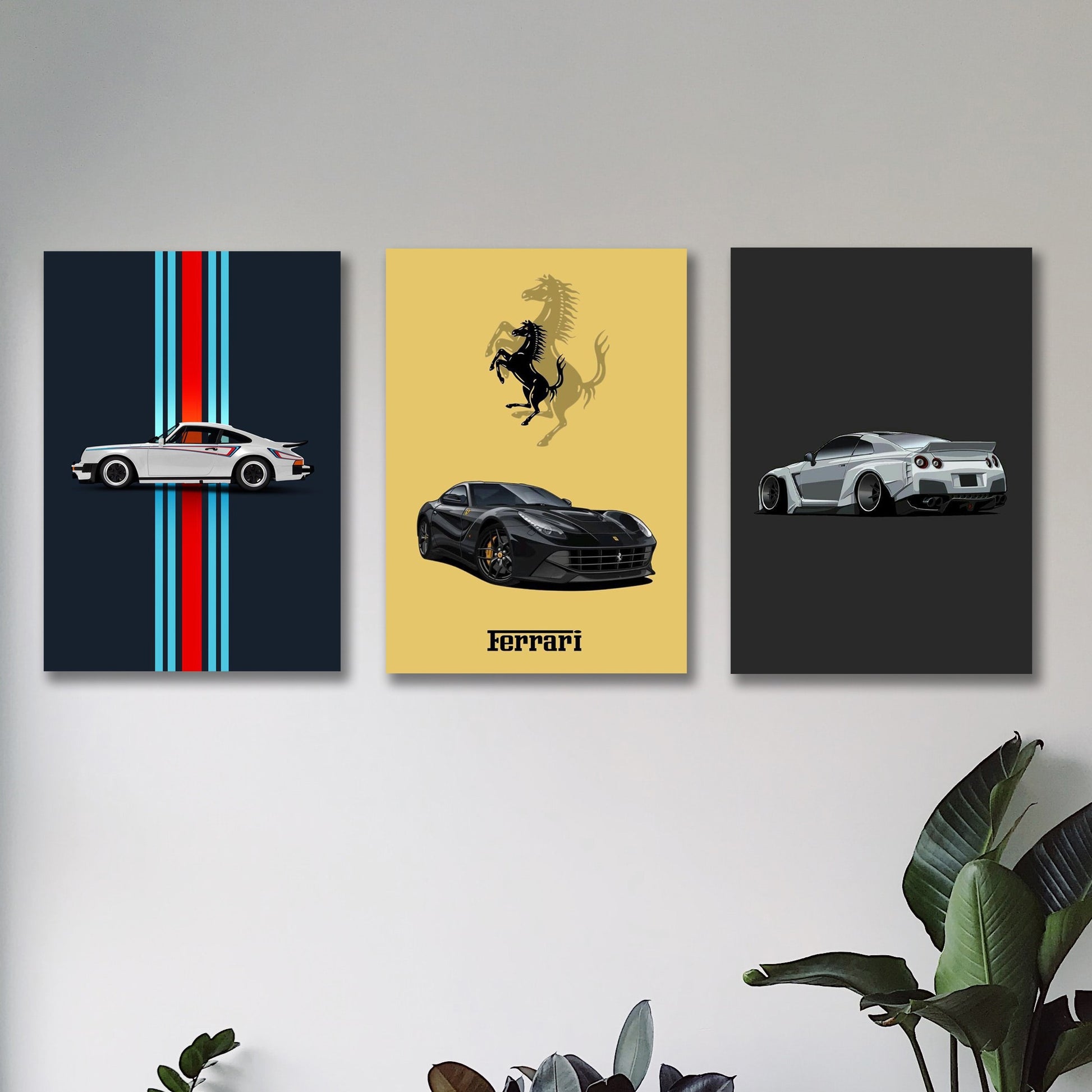 Set Of 3 Sports Cars Wooden Canvas Frames For Wall Decor / Sticky Prototiles